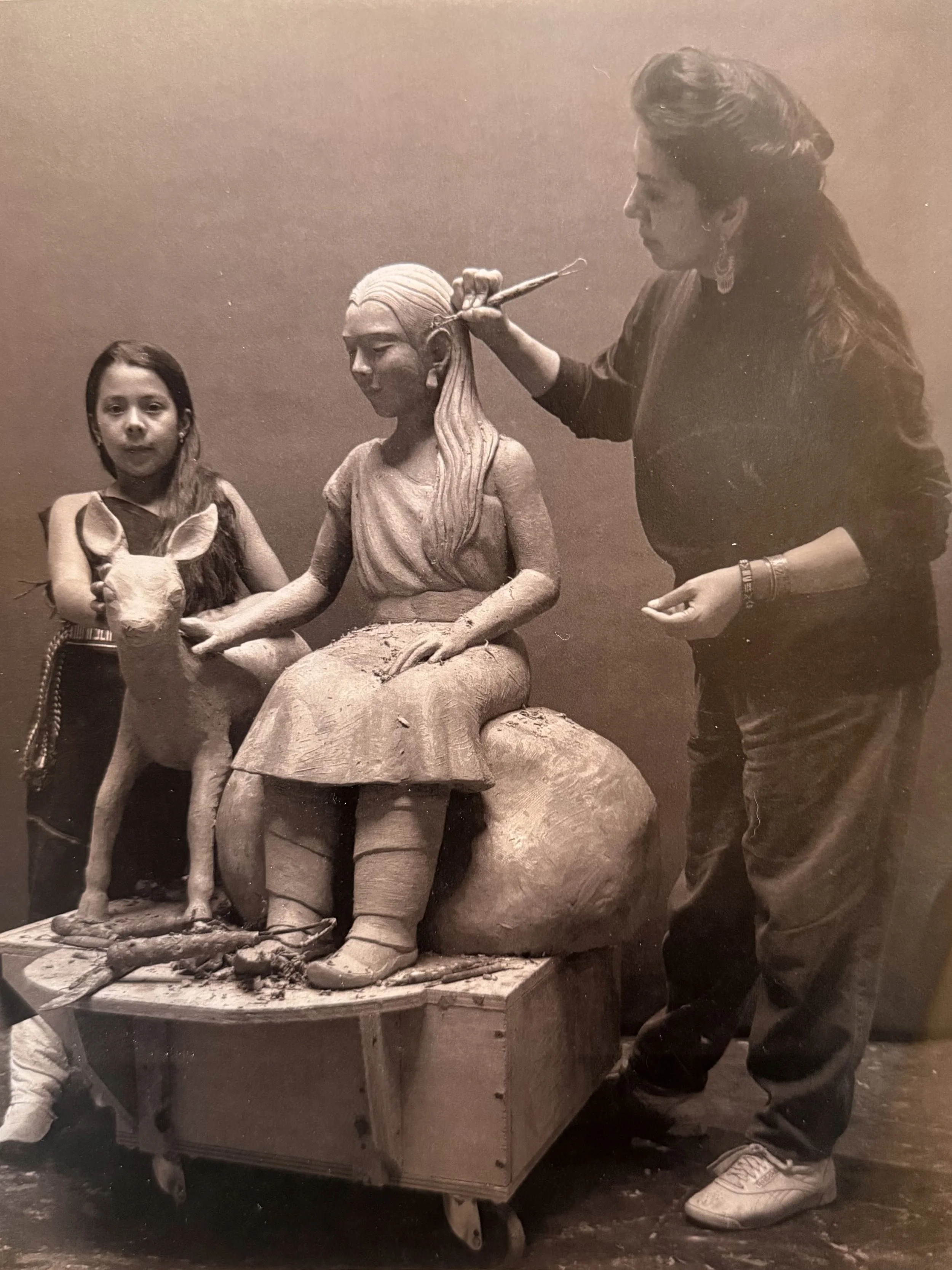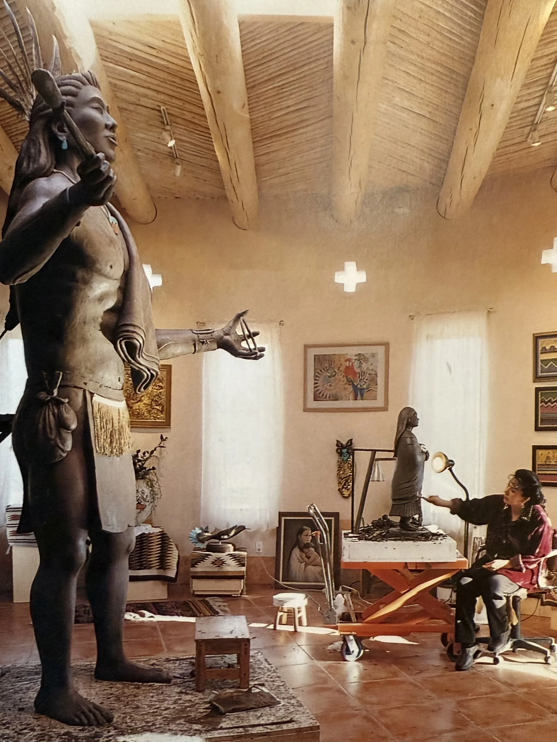 Despite international acclaim and global exhibitions, Estella ultimately returned to Jemez Pueblo, drawn by the gravitational pull of home and community. There, she immersed herself in the teachings of Pueblo pottery, passed down by her mother and grandmother, and integrated their matrilineal knowledge into her evolving sculptural language. Her trajectory toward monumental sculpture was profoundly shaped by her mentor, Allan Houser, whose guidance and example catalyzed her ascent into bronze.